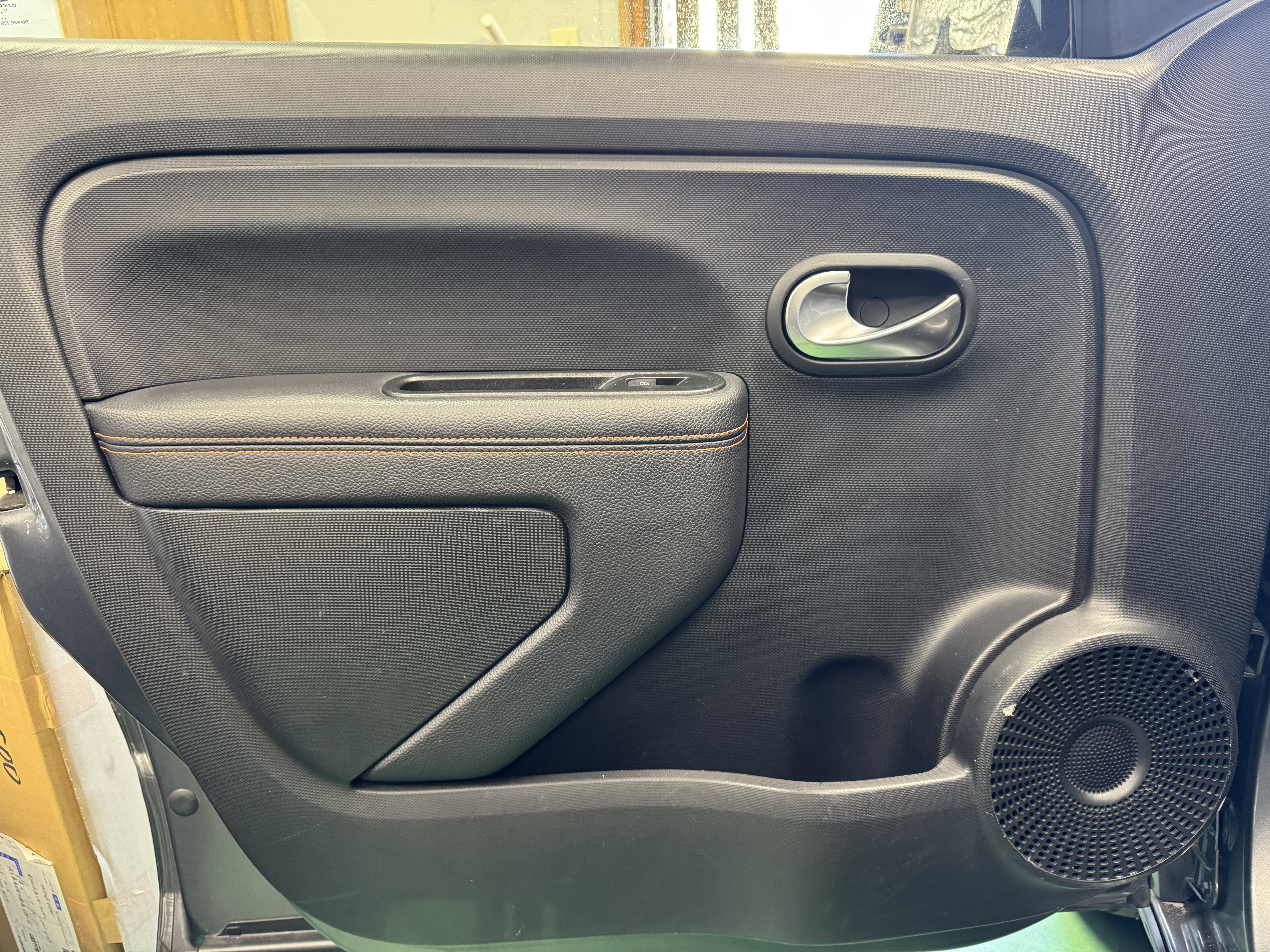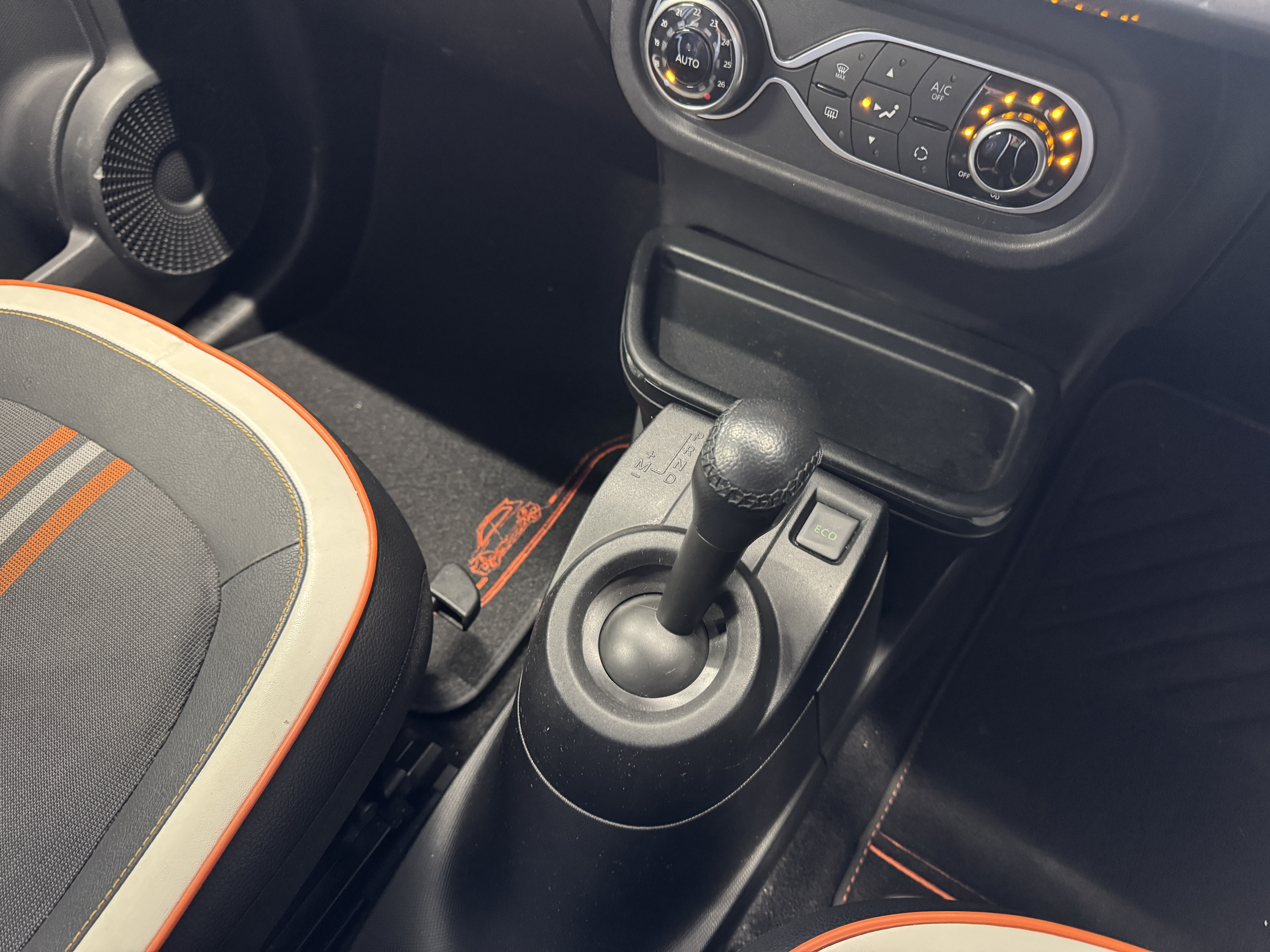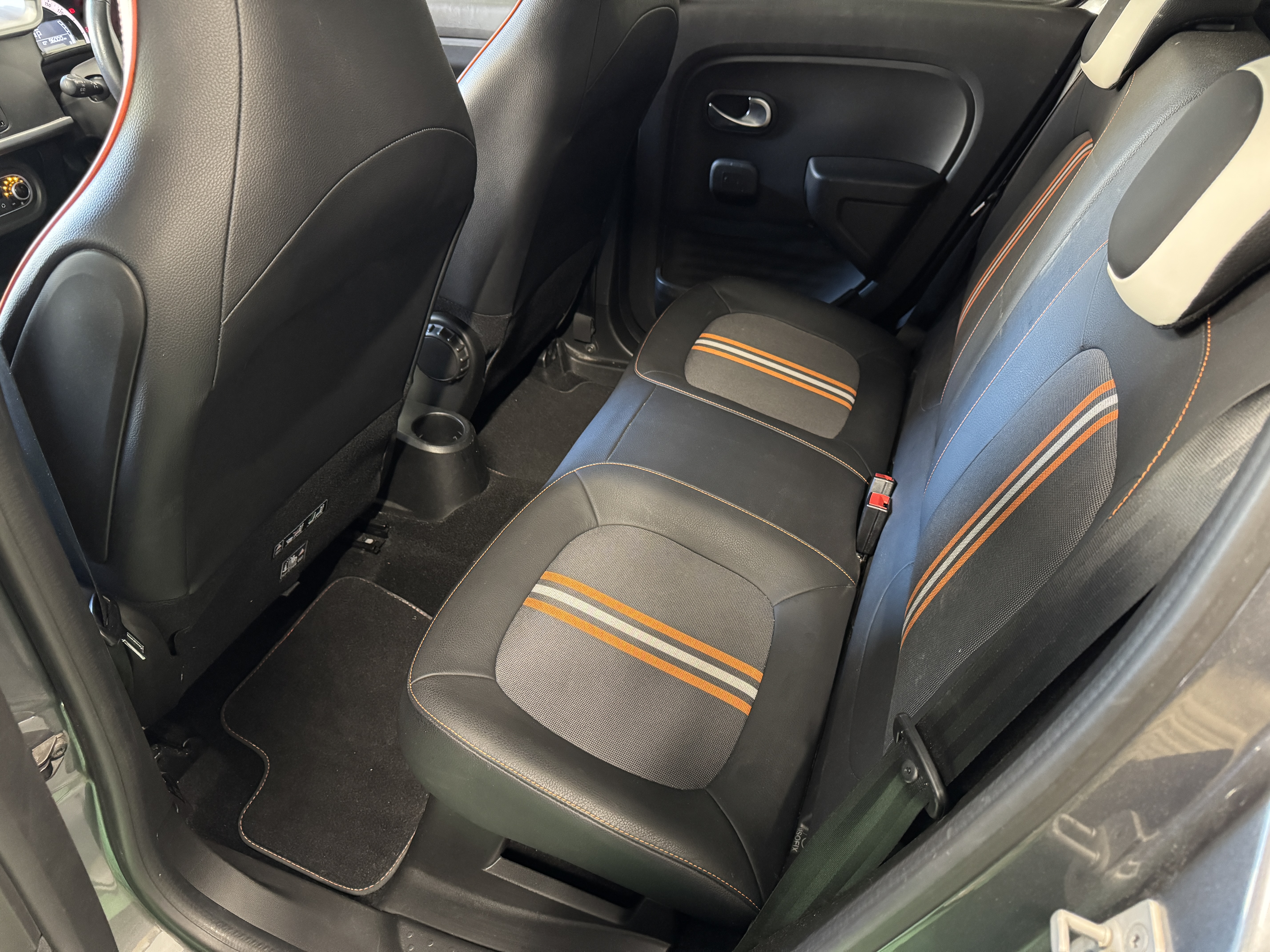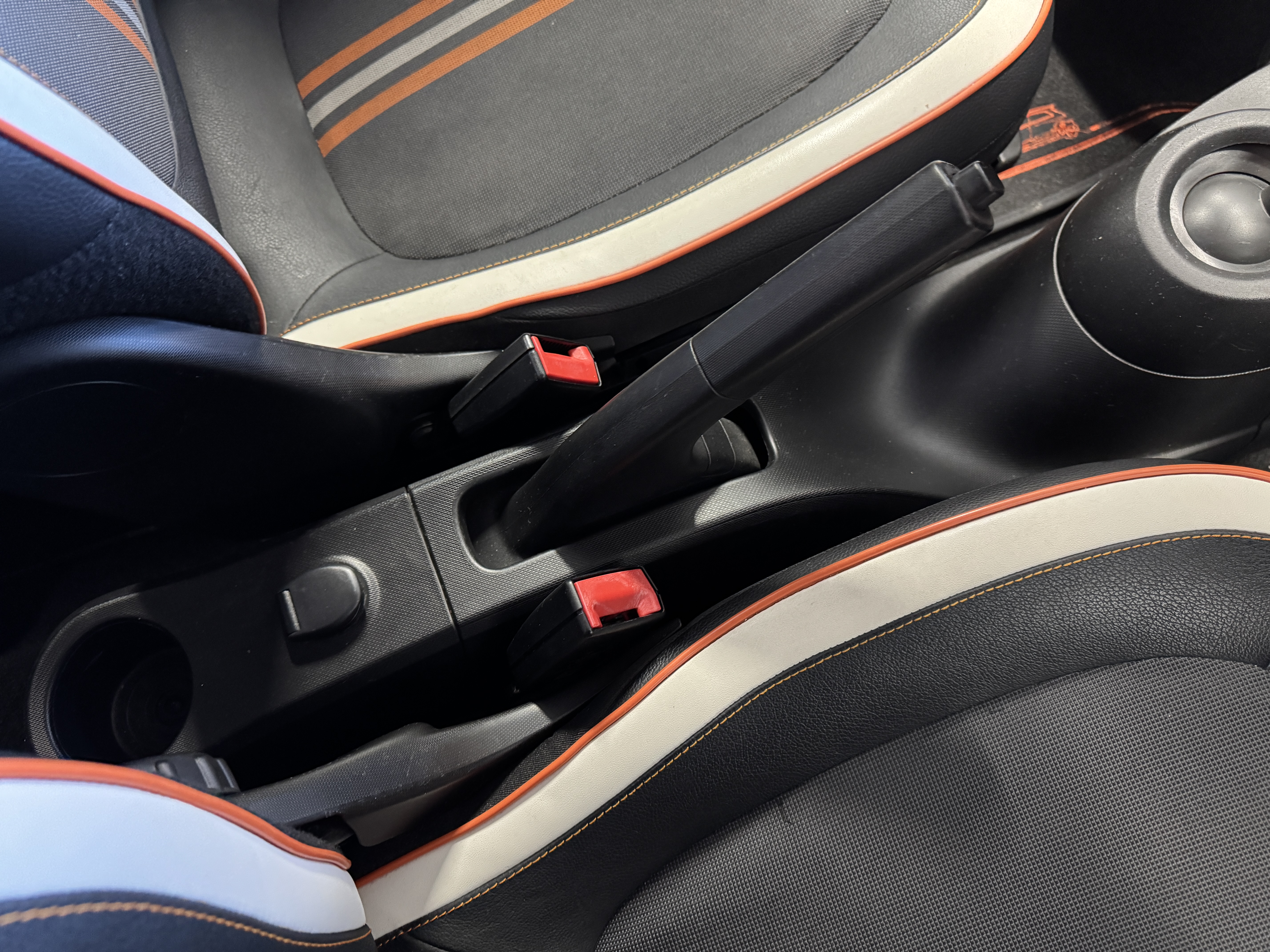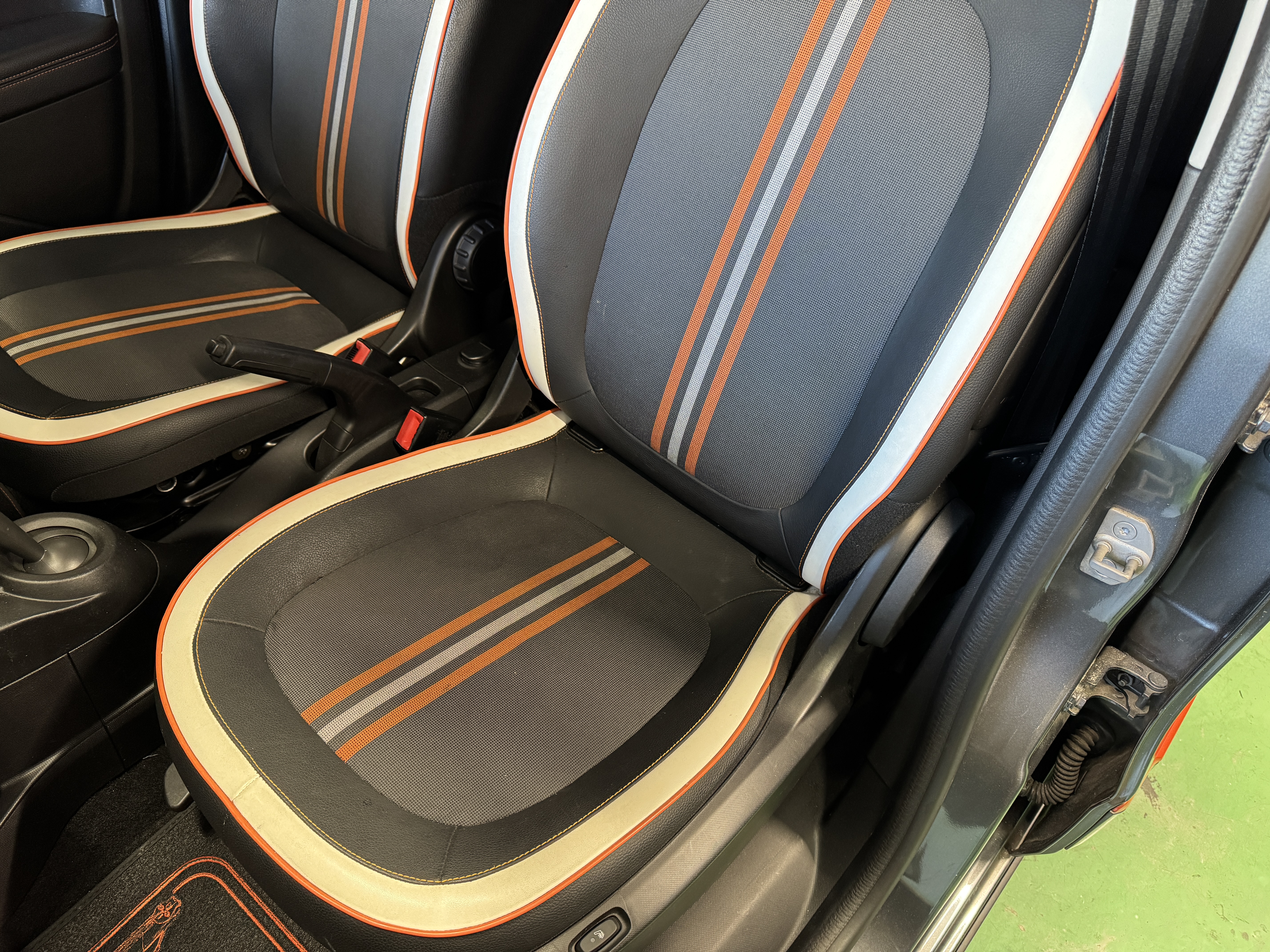 ファブリック×フェイクレザーのシート生地を採用し、オレンジステッチとなっております。