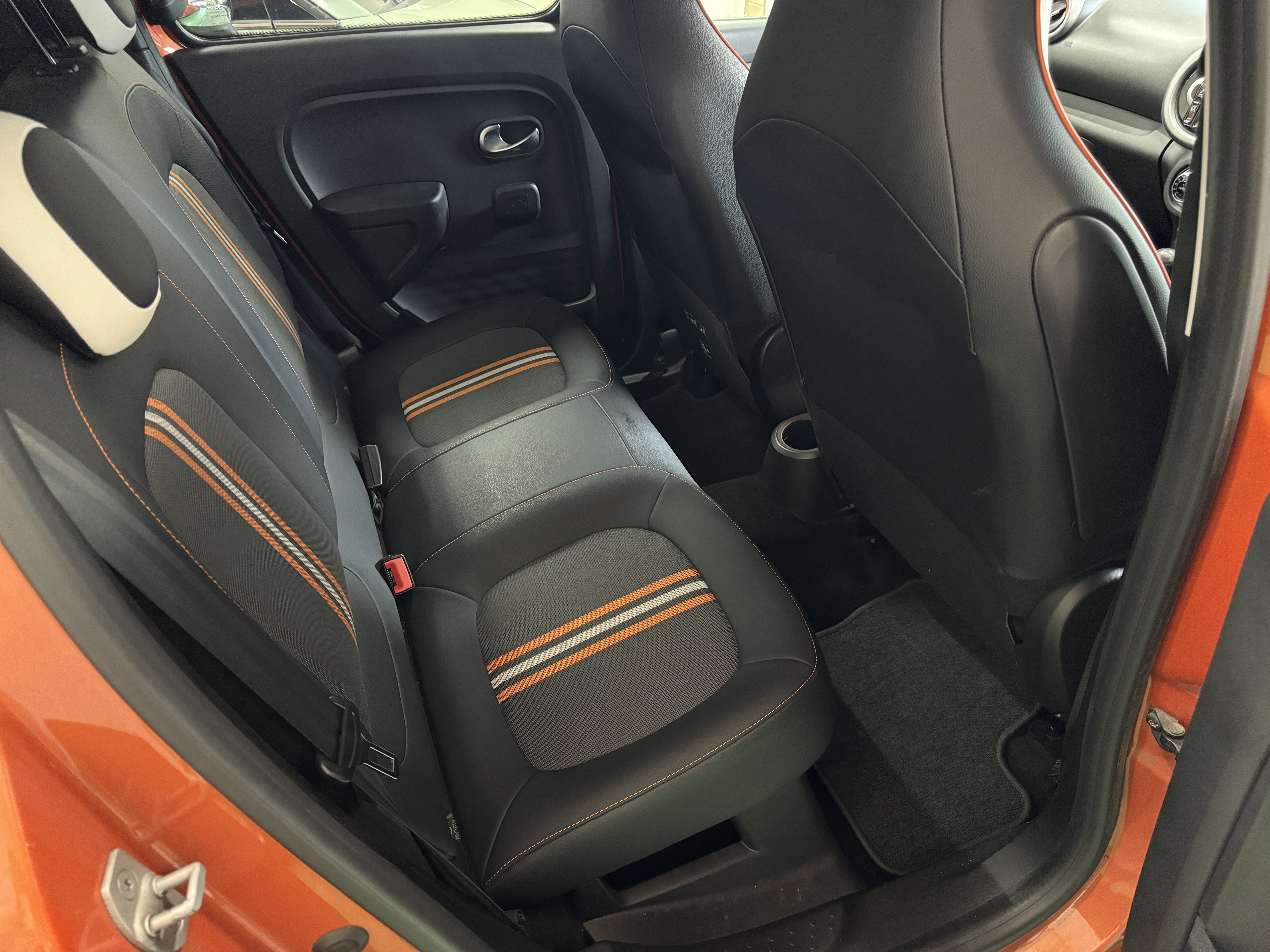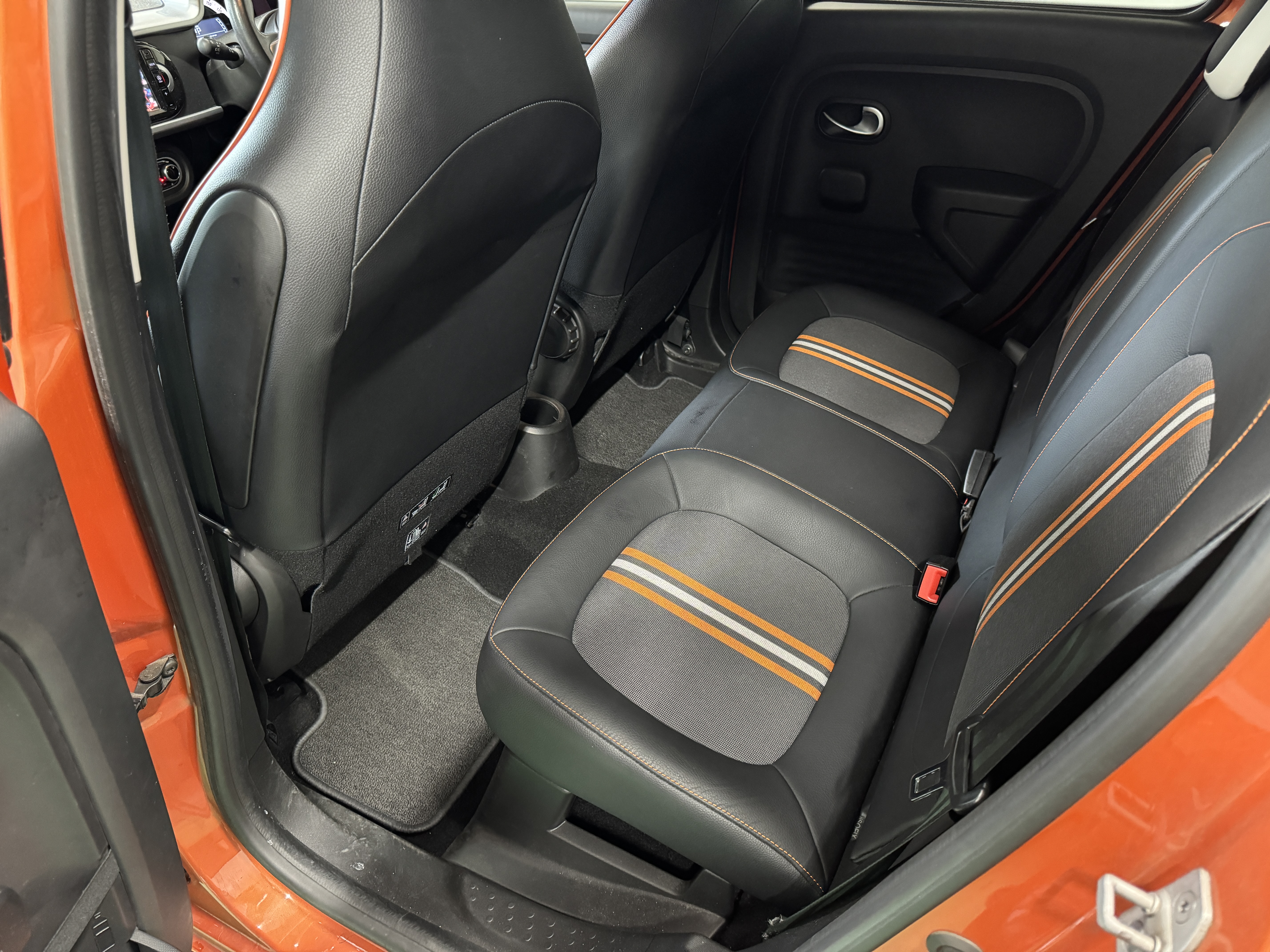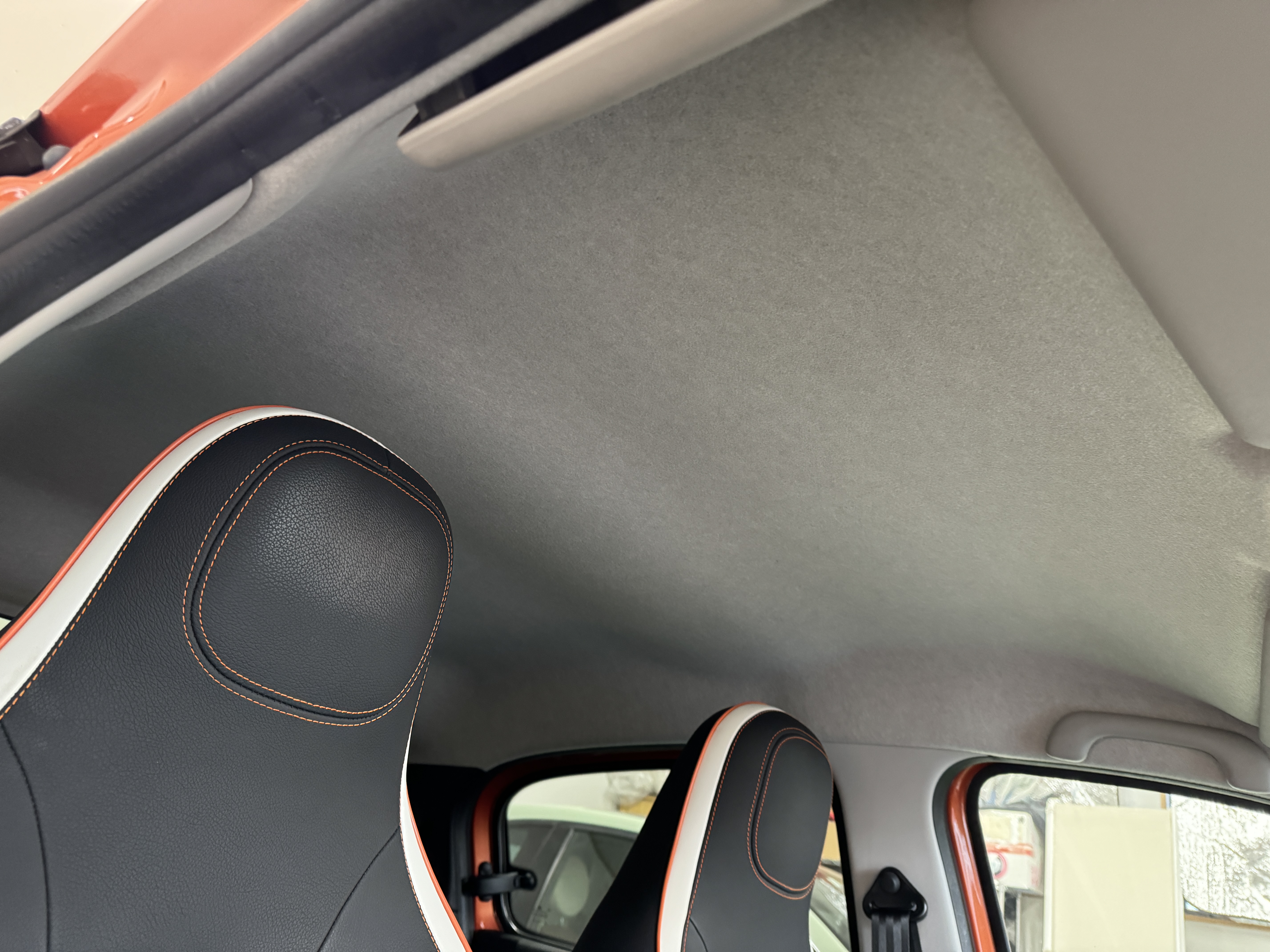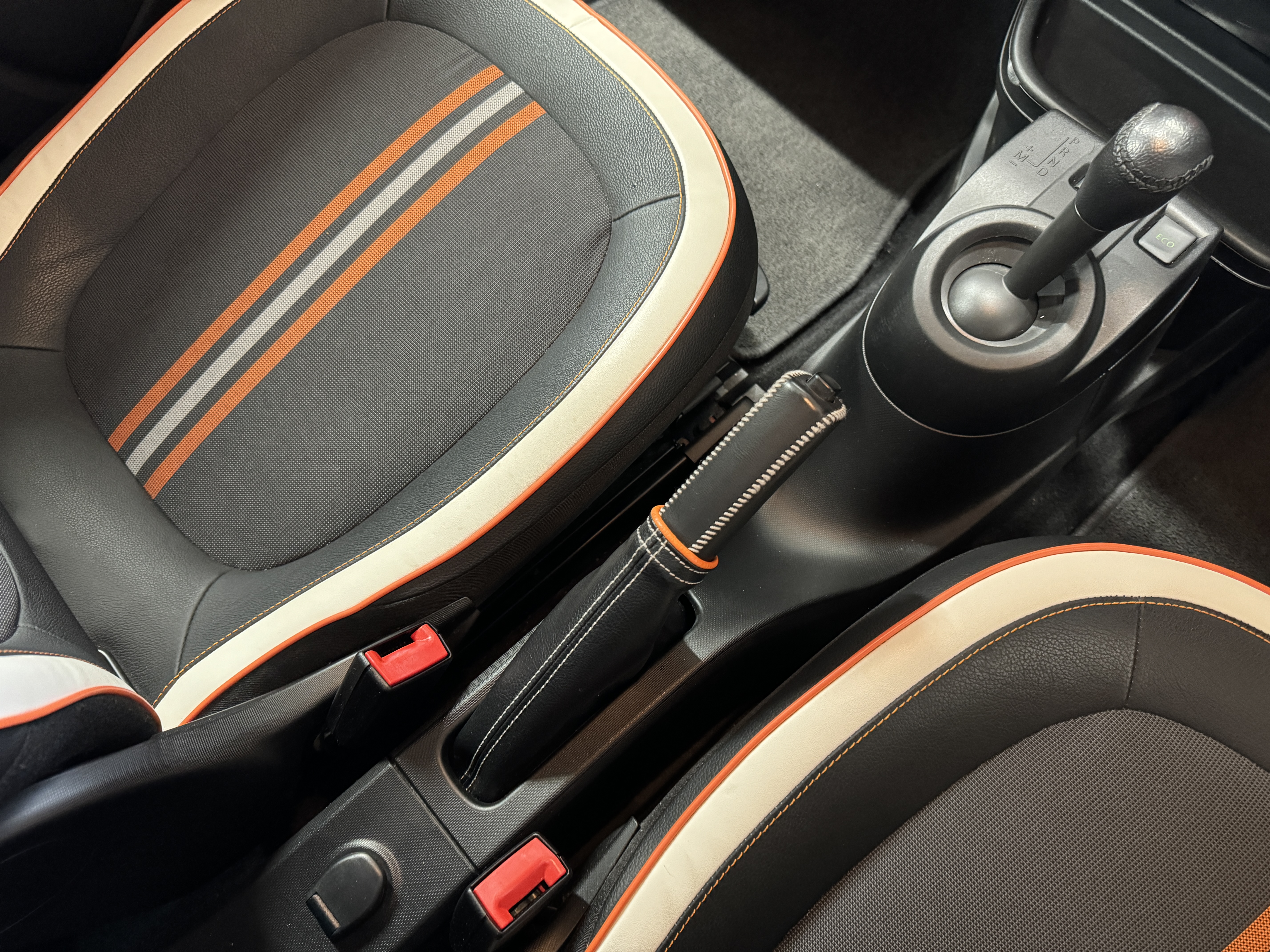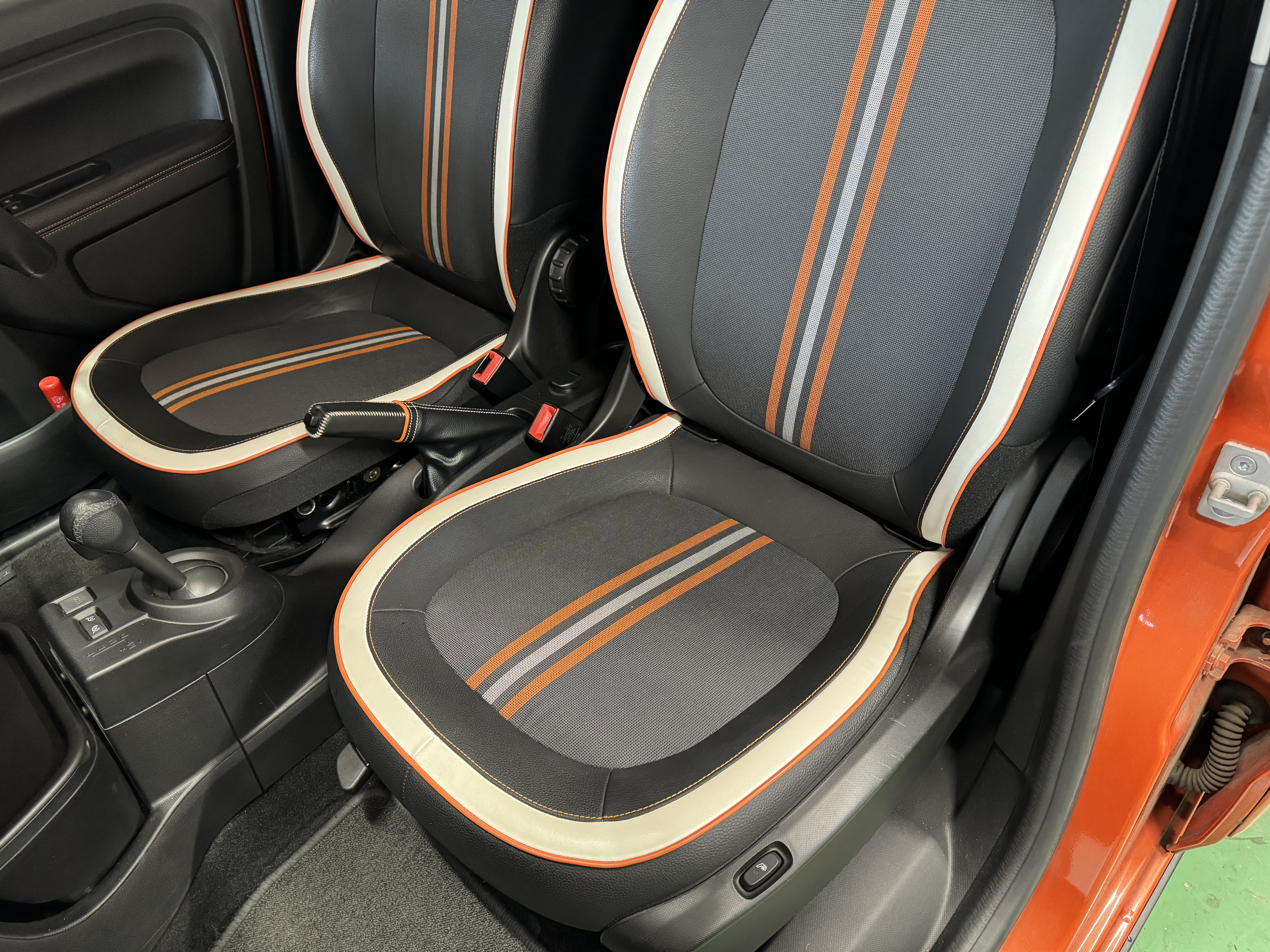 ファブリック×フェイクレザーのシート生地を採用し、オレンジステッチとなっております。
