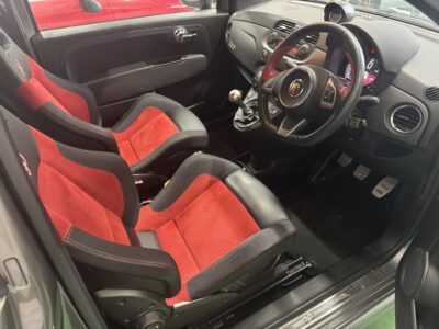 こちらのお車は595の中でも、走りを重視した「Competizione(コンペティツィオーネ)」です。そして、2016年からギャレットタービンを装備し、20PSアップし、最高出力180psとなります。そしてレコードモンツァデュアルモードエキゾーストシステム、専用17インチアロイホイール、サベルト製レッドアルカンターラ/ブラックレザーコンビセミバケットスポーツシート等を装備。