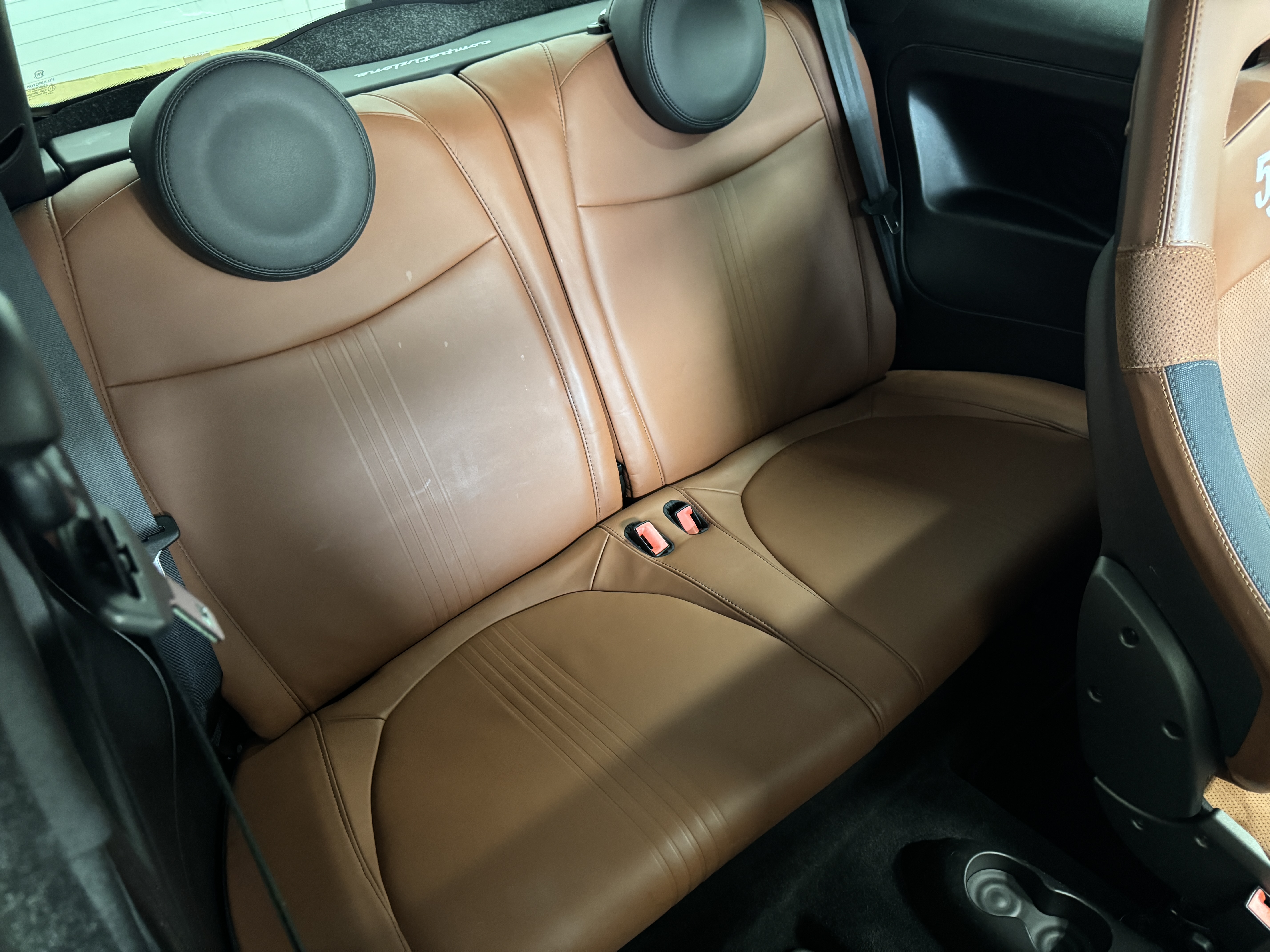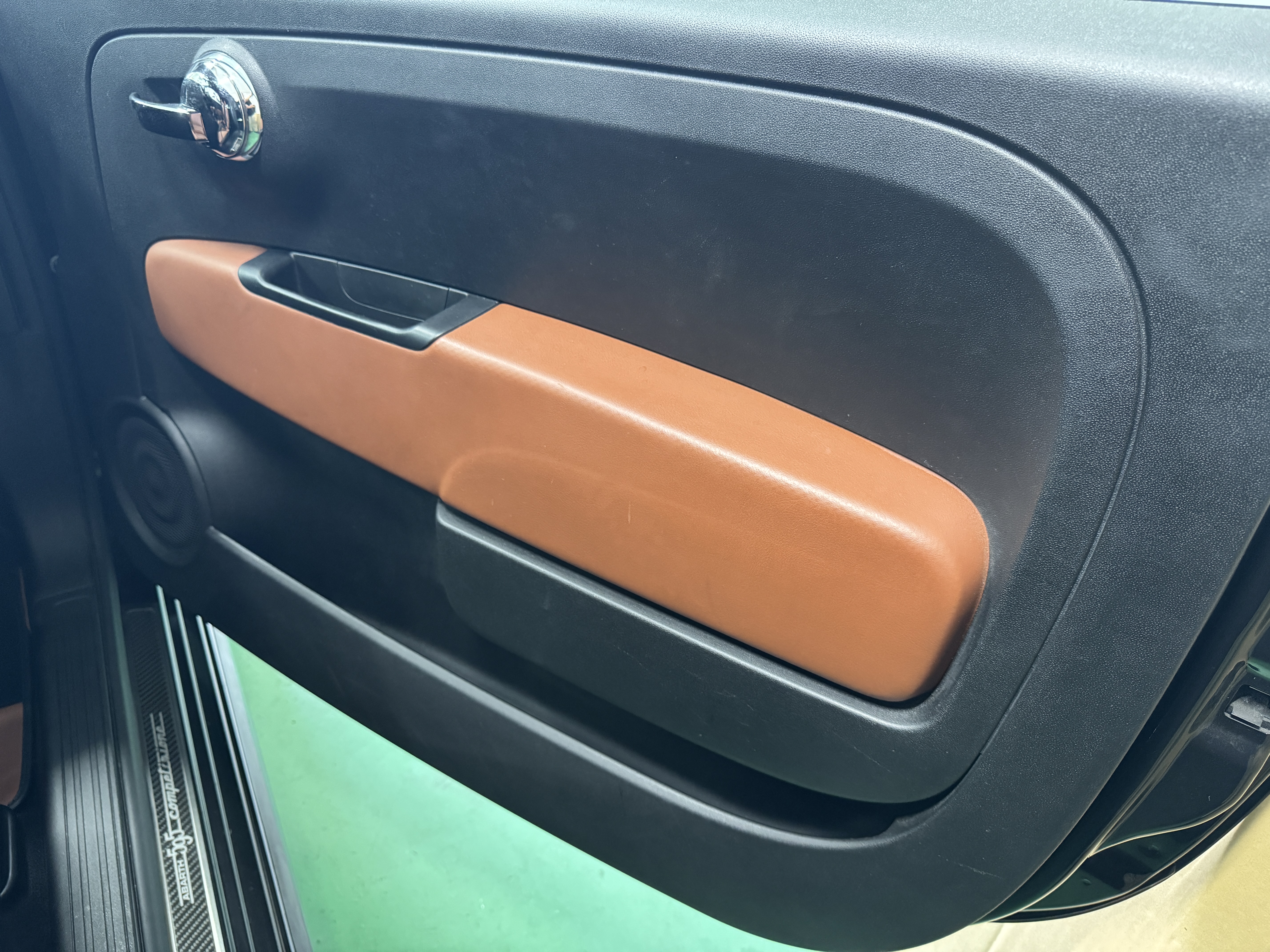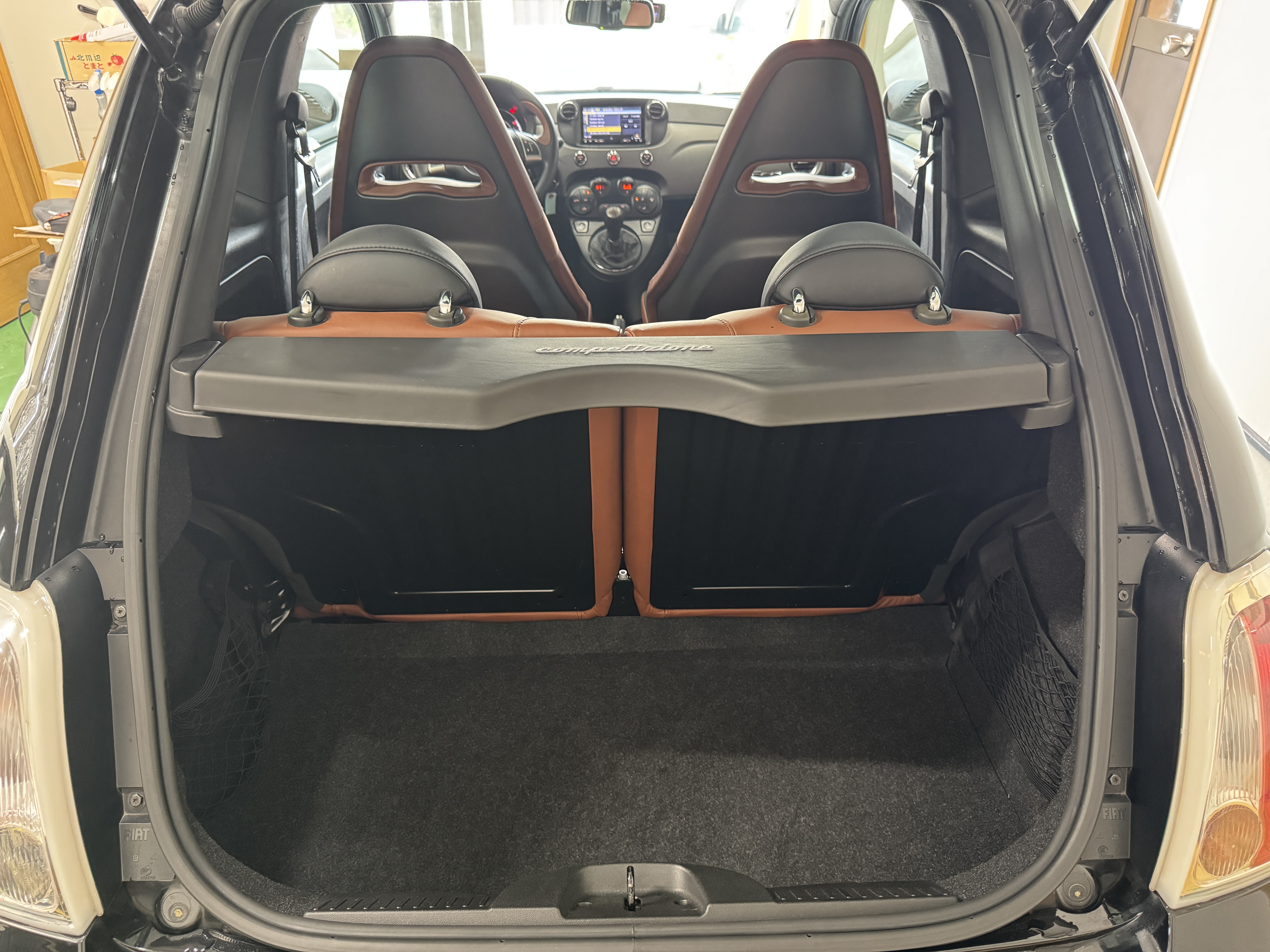 こちらのお車は595の中でも、走りを重視した「Competizione(コンペティツィオーネ)」ですので、最高出力180psでレコードモンツァデュアルモードエキゾーストシステム、専用17インチアロイホイール、サベルト製レッドアルカンターラ/ブラックレザーコンビセミバケットスポーツシート等を装備。