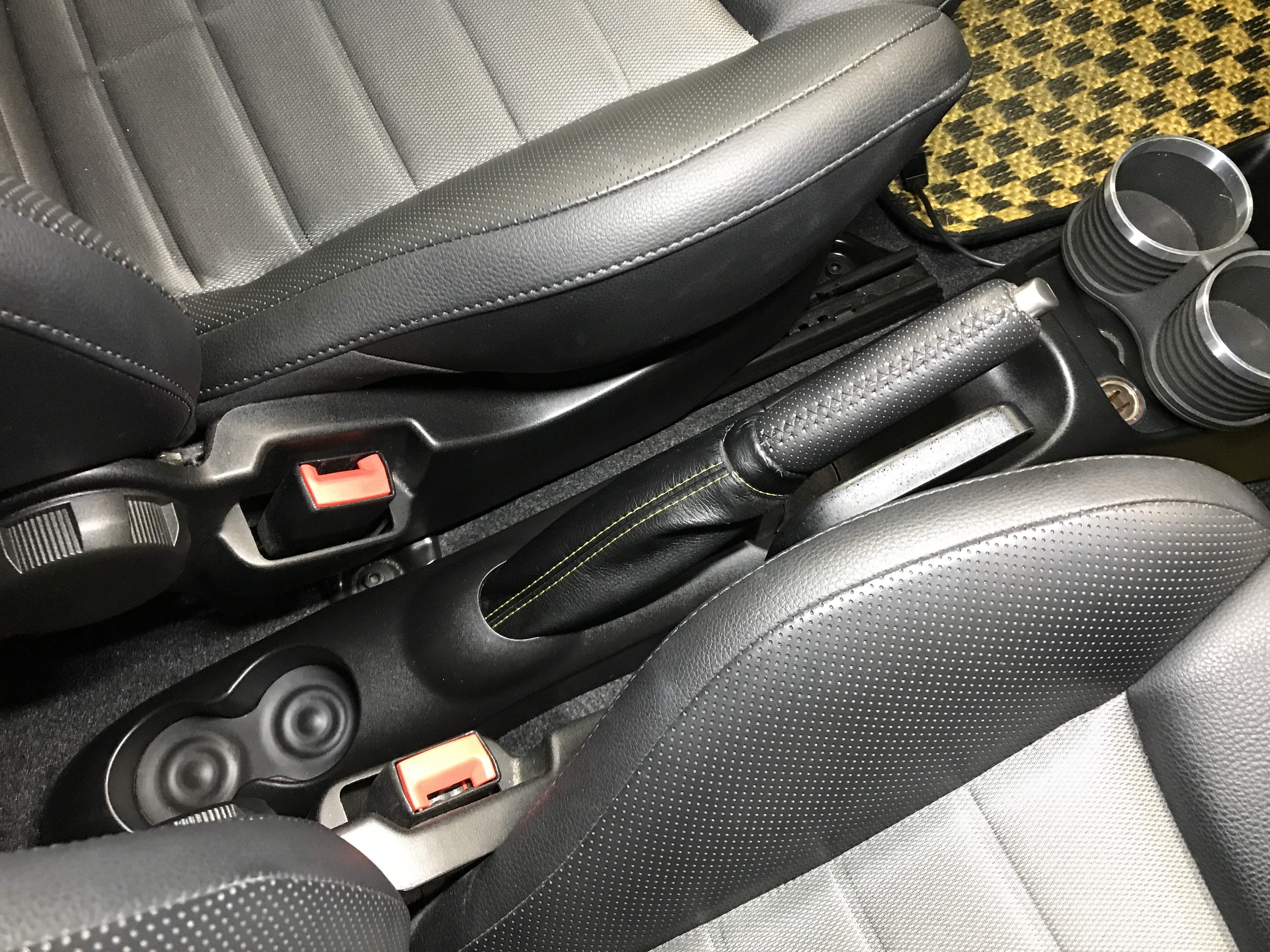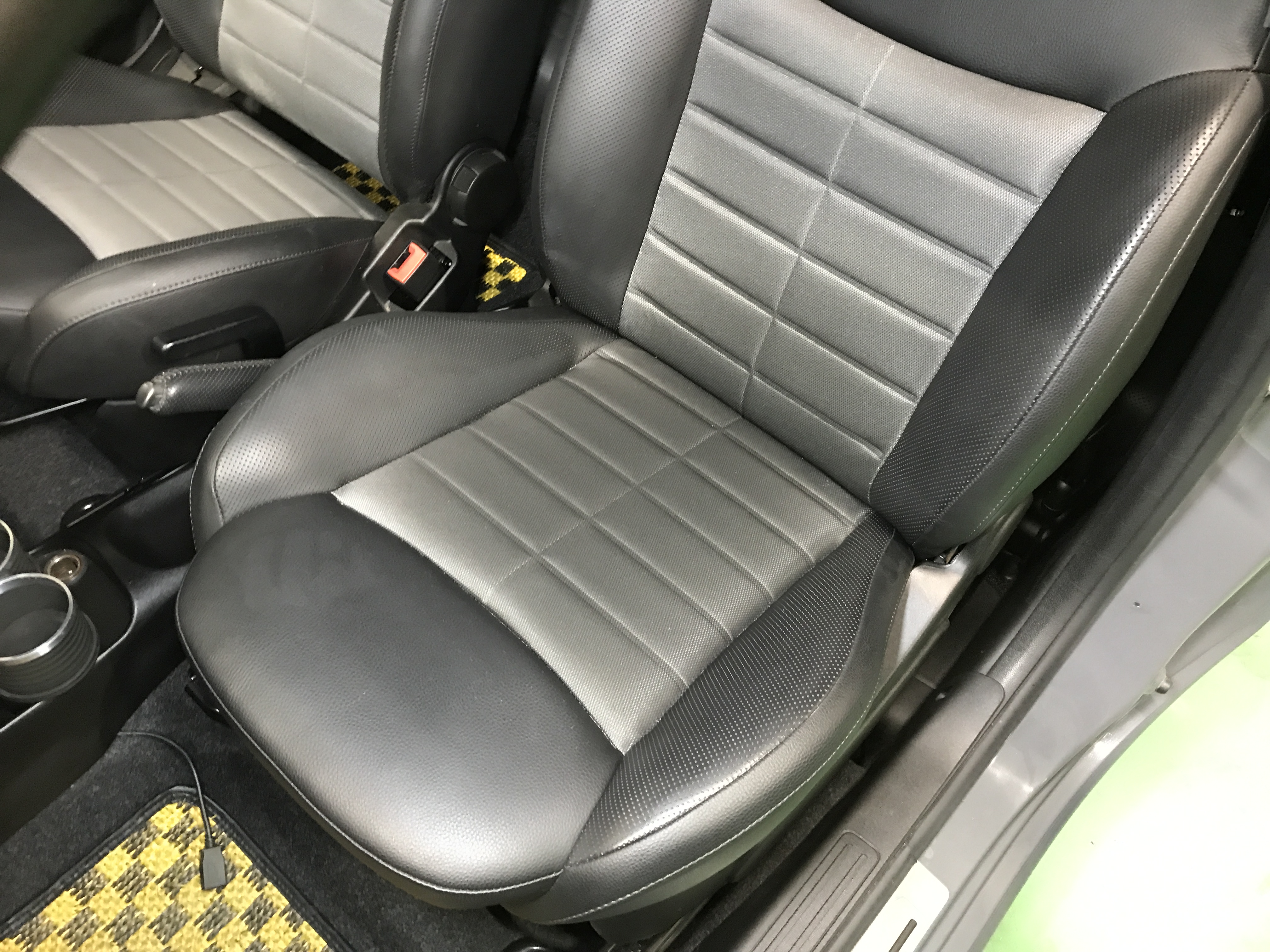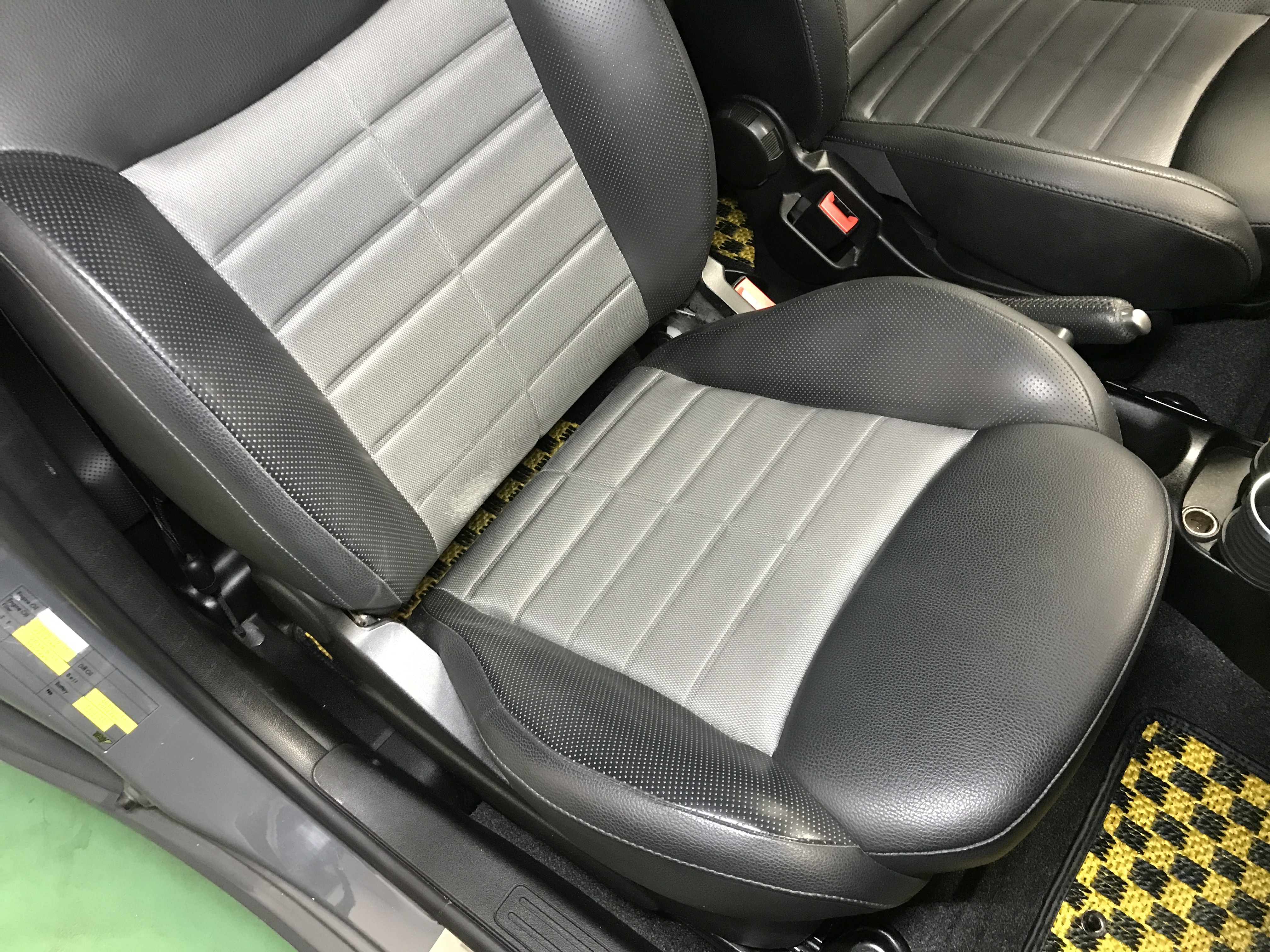 ブラックレザー/テクニカルファブリックコンビスポーツシート