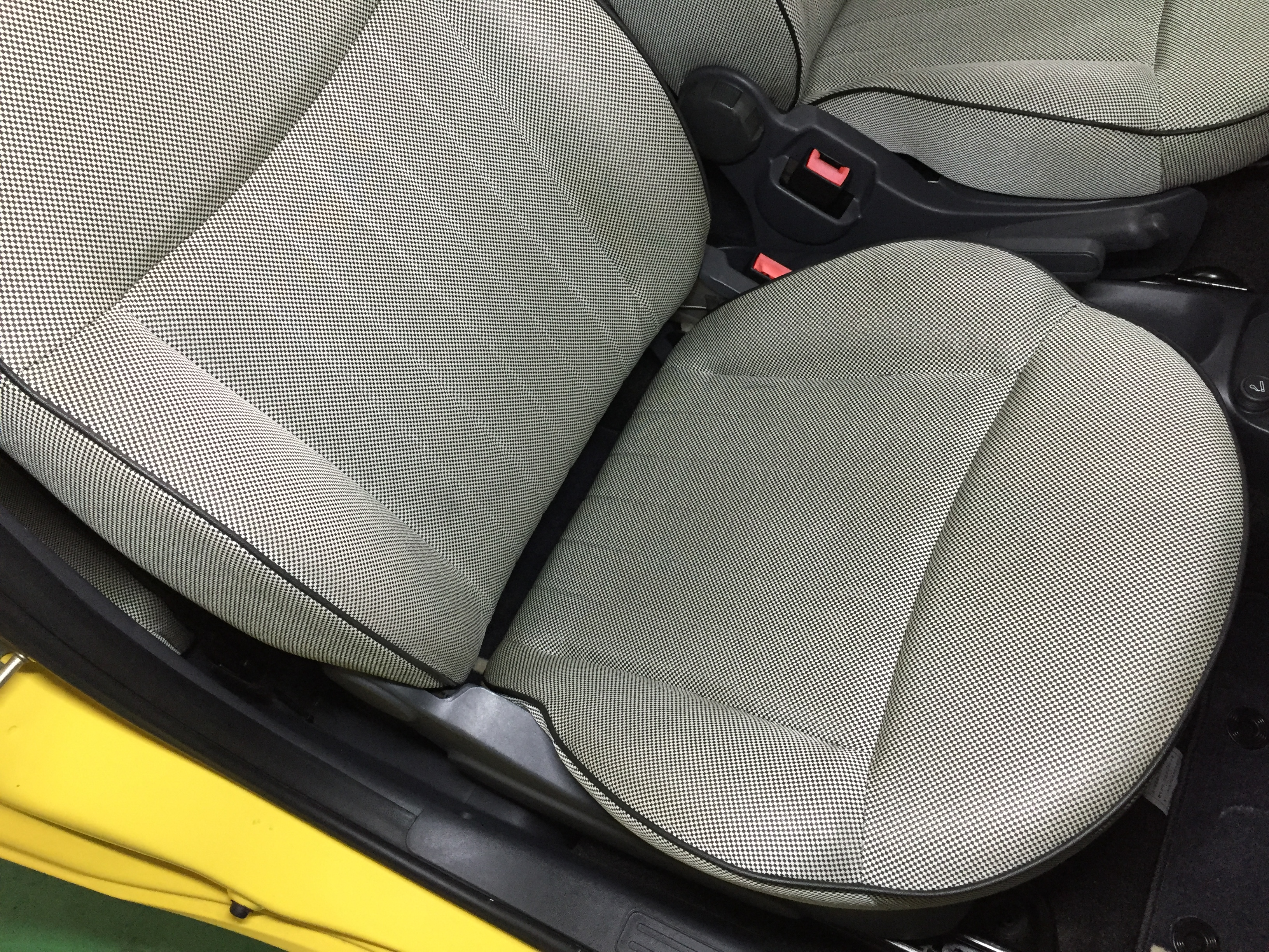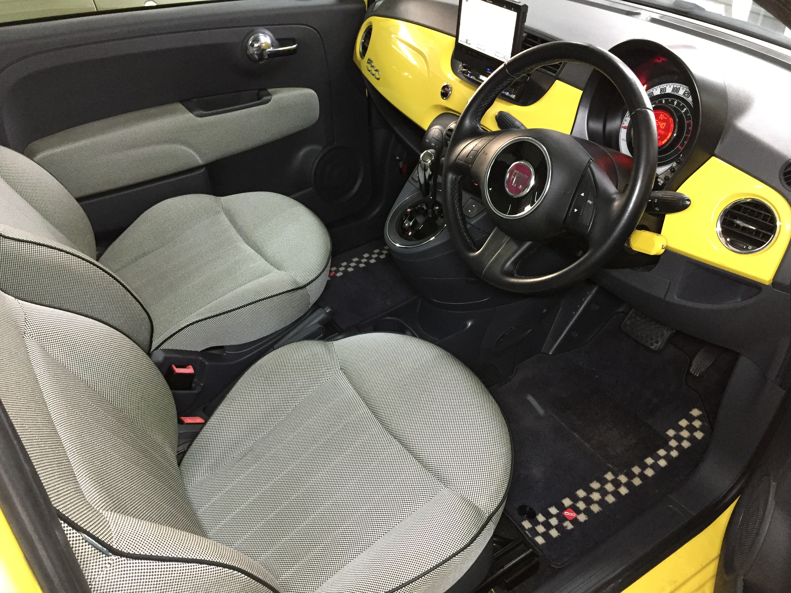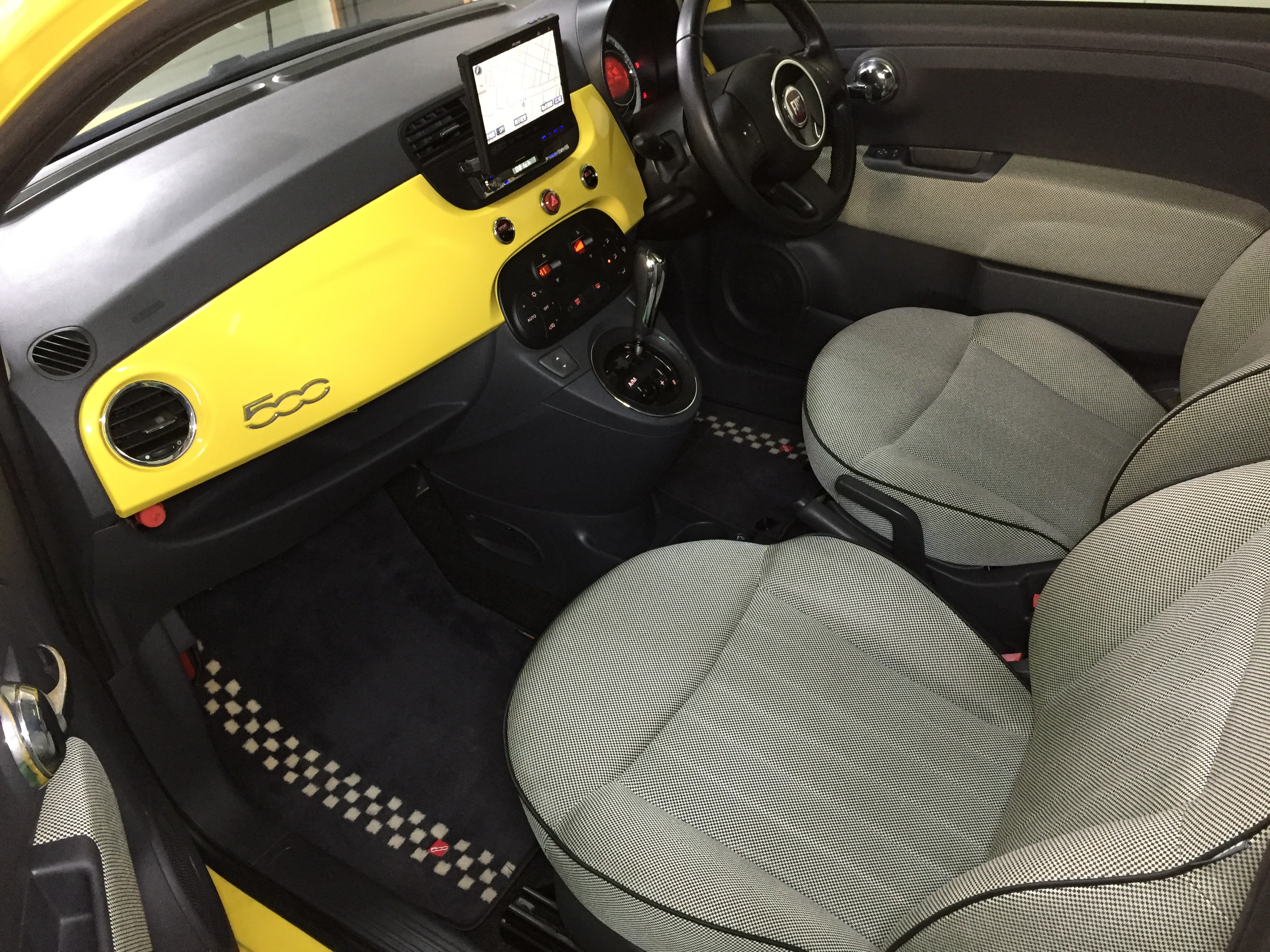 インテリアはブラックインテリアになり、かわいさがありながらも、引き締まった印象で、100HPを発揮する1.4ラウンジにはぴったりな組み合わせとなっております。